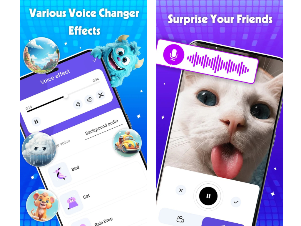 🔥 Vô số hiệu ứng thay đổi giọng nói: Squirrel, Kid, DeathGirl, Cave, Grand Canyon, Hexafluoride, Robot, Điện thoại, Người ngoài trái đất, Giọng nói trong nhà máy, Nhân vật phản diện, Zombie, Megaphone, Irish, Girl, Boy, Baby…